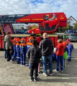 Feuerflitzer Glauberg besuchen Drehleiter der Feuerwehr Altenstadt Für unsere Feuerflitzer stand vor einigen Tagen ein besonderer Ausflug an: Die Kindergruppe machte sich auf den Weg zur Feuerwehr Altenstadt. Dort wurde