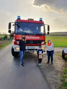 Kleine Osterüberraschung für die Feuerdrachen Wenn die Kinder nach wie vor aufgrund der aktuellen Situation nicht zur Feuerwehr gehen können, kommt die Feuerwehr eben zu Ihnen. So auch an Ostern: